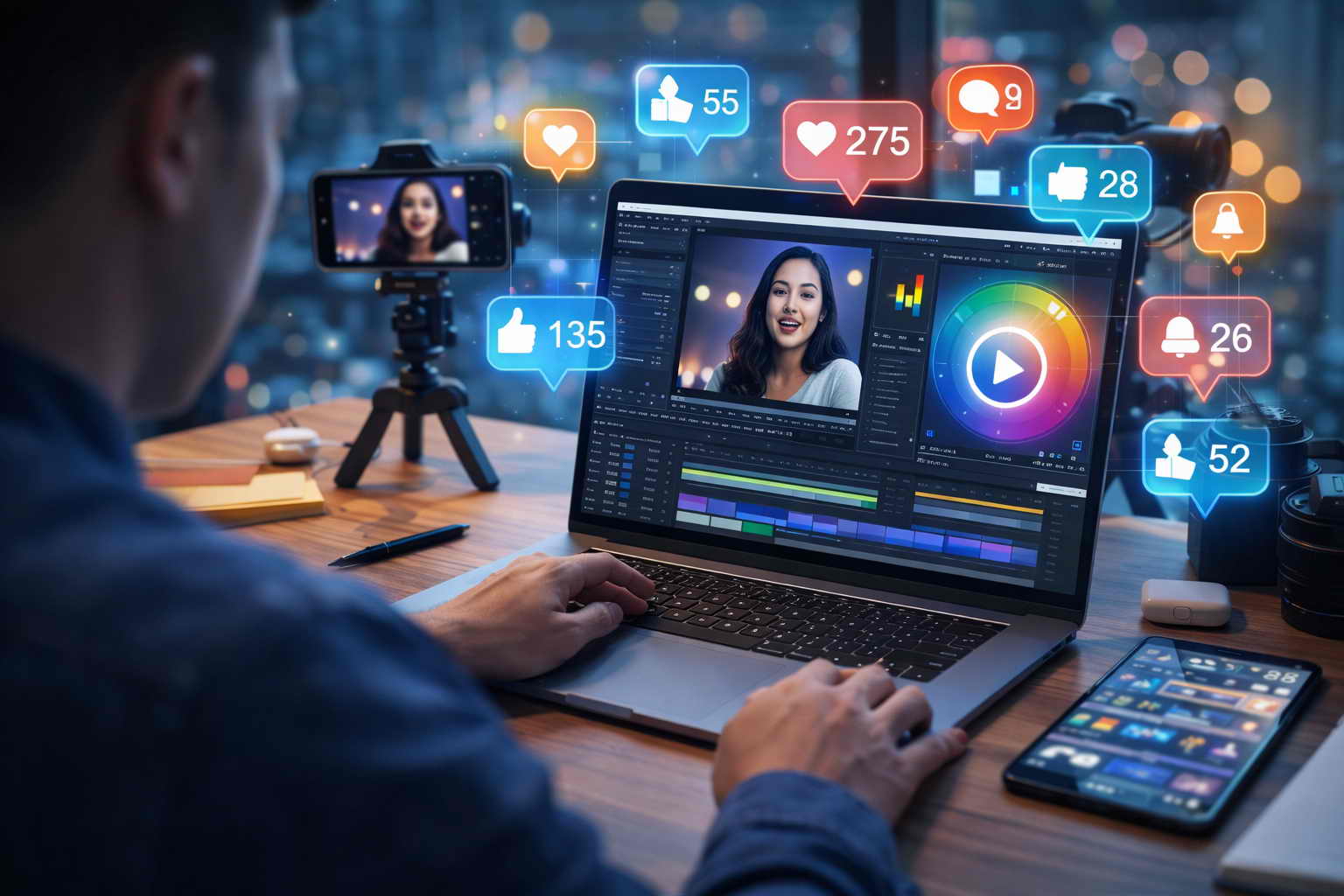 Создание видео начинается с анализа задачи и понимания целей бизнеса, после чего разрабатывается идея и сценарий ролика. Далее выполняется монтаж и оформление, чтобы видео выглядело современно и удерживало внимание. В результате вы получаете готовый видеоролик, который привлекает аудиторию и работает на привлечение клиентов.